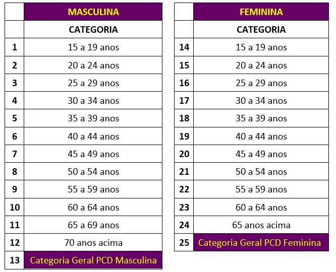 PREMIAÇÃO PARA AS 23 CATEGORIAS MASCULINA E FEMININA POR FAIXA ETÁRIA