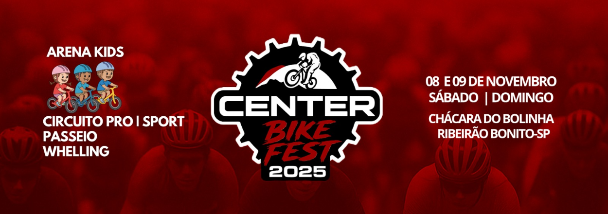 O Center Bike Fest 2025 será um evento esportivo e recreativo com competições de MTB Maratona (XCM), Wheeling, Passeio Ciclístico e Arena Kids, reunindo atletas e famílias apaixonadas pelo ciclismo em um final de semana de muita diversão, adrenalina e solidariedade.